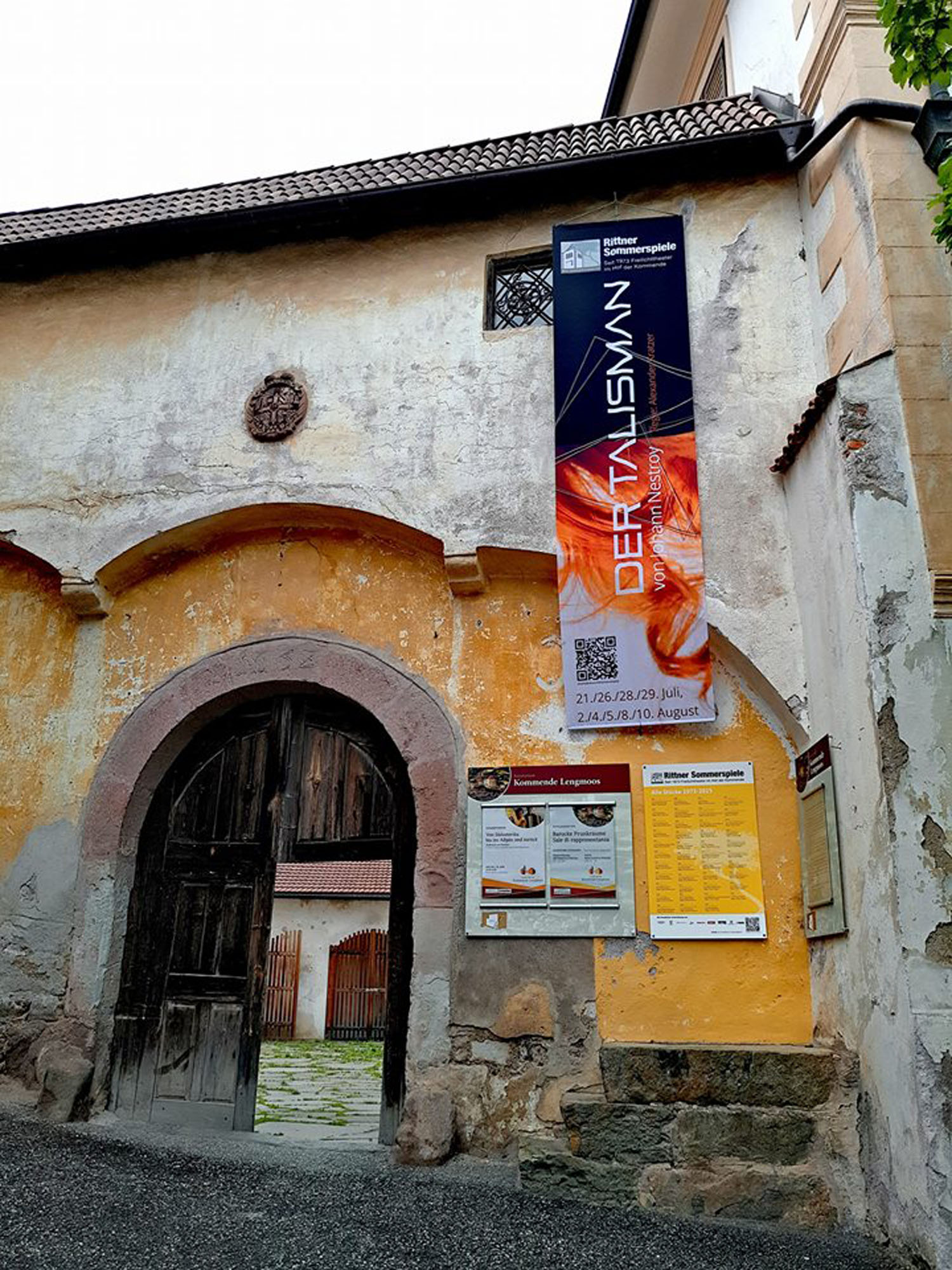Ein uralter Innenhof, ein gebogener Baum und über uns der Mond und ein paar Wolken – so präsentiert sich der Schauplatz der Rittner Sommerspiele. Wer glaubt, es handelt sich hierbei um ein Sportevent, irrt. Vielmehr geht es um Theater unter dem Sternenhimmel.