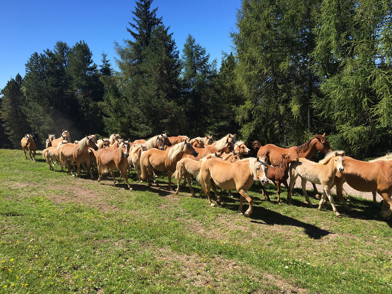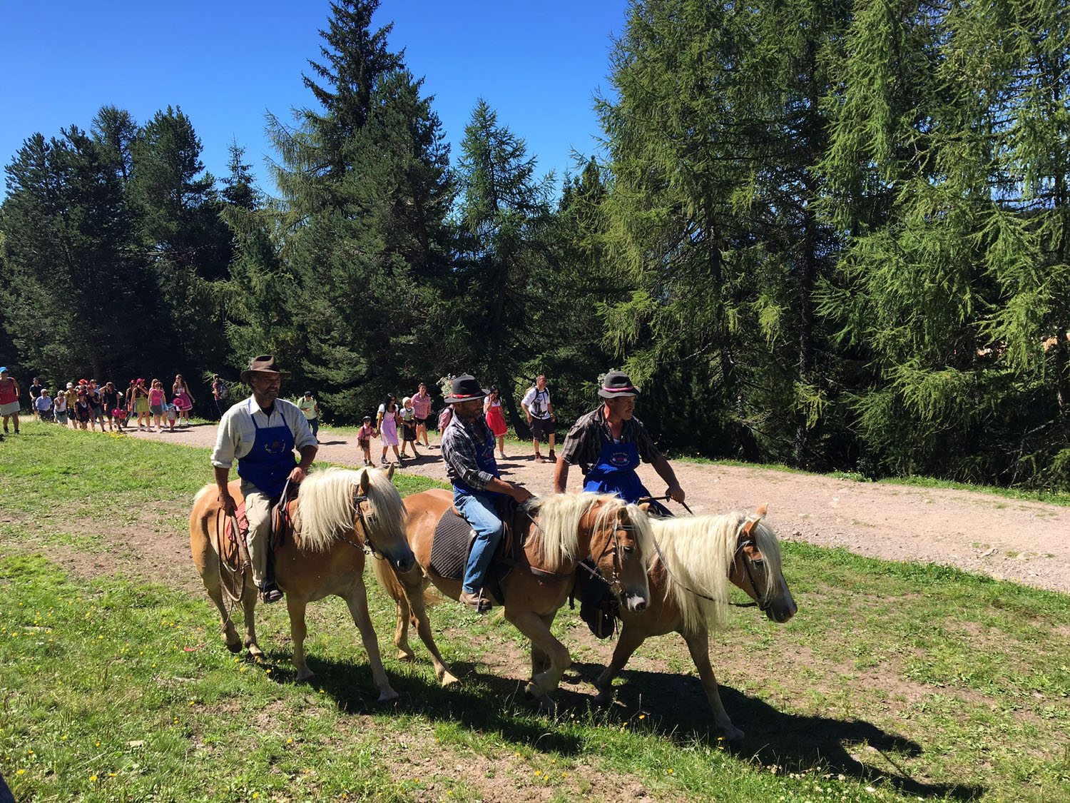Wie auch immer – um Schlag 12 Uhr, der Höhepunkt des Festes: viele Haflinger Pferde und Kühe werden eingetrieben. Das Ganze erinnert etwas an eine Modeschau der Tiere und im weitesten Sinne ist es das auch, denn die Zuschauer klatschen und die Tiere werden von den Bauern begutachtet und gehandelt. Die Luft ist erfüllt von Gewieher, „Gemuhe“ und Glockengebimmel und dem Duft nach Bratwürsten, Koteletts und Krapfen. Die Saltner (Hirten) lüften ihre schön geschmückten Hüte und zeigen ihre Künste beim Goaßlschnöllen. Jung und Alt, Einheimische und Gäste sitzen auf Picknickdecken im Gras und genießen die Aussicht auf die traumhafte Südtiroler Bergkulisse. Kurz: Hier kann man es sich gutgehen lassen. Später, wenn das bunte Treiben vorüber ist, wird in Pemmern weitergefeiert bis in die späten Abendstunden.