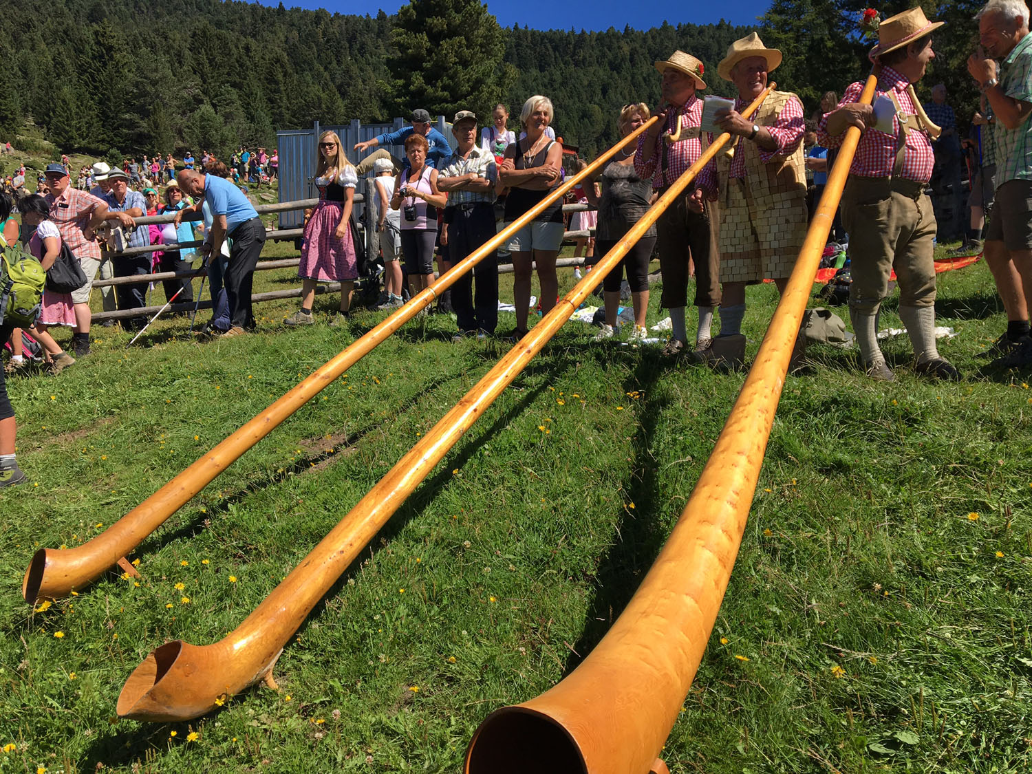 Weißwurst und Hefebier – damit startet der „inoffizielle“ Feiertag am 24. August. In mehreren Betrieben auf dem Weg zum Rittner Horn oder am Horn wird schon frühmorgens auf diesen besonderen Tag angestoßen. Natürlich im Dirndl oder in der Lederhose, denn Tracht ist „in“. Ab 10 Uhr spielt die Wangener Musikkapelle auf der Almwiese. Die einen wandern zu Fuß direkt hinauf, die anderen machen einen Zwischenstopp auf der Saltner Hütte und wieder andere nehmen bequem die Kabinenbahn und steigen auf dem Wanderweg 1 ab.