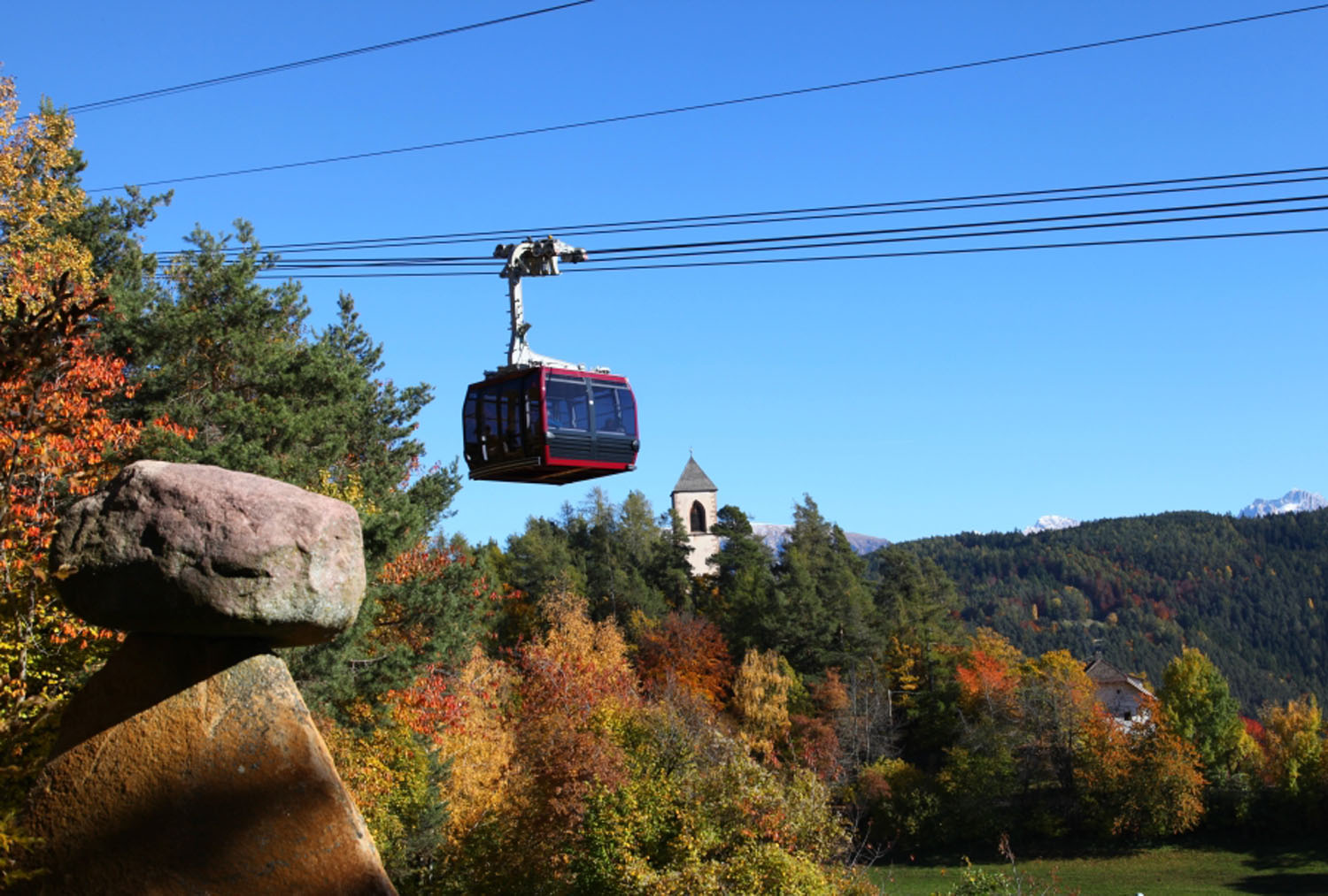 Rittner Seilbahn über die Weinberge des bunten St. Magdalener Hügels! Ein „Indian Summer“ vor herrlicher Bergkulisse.