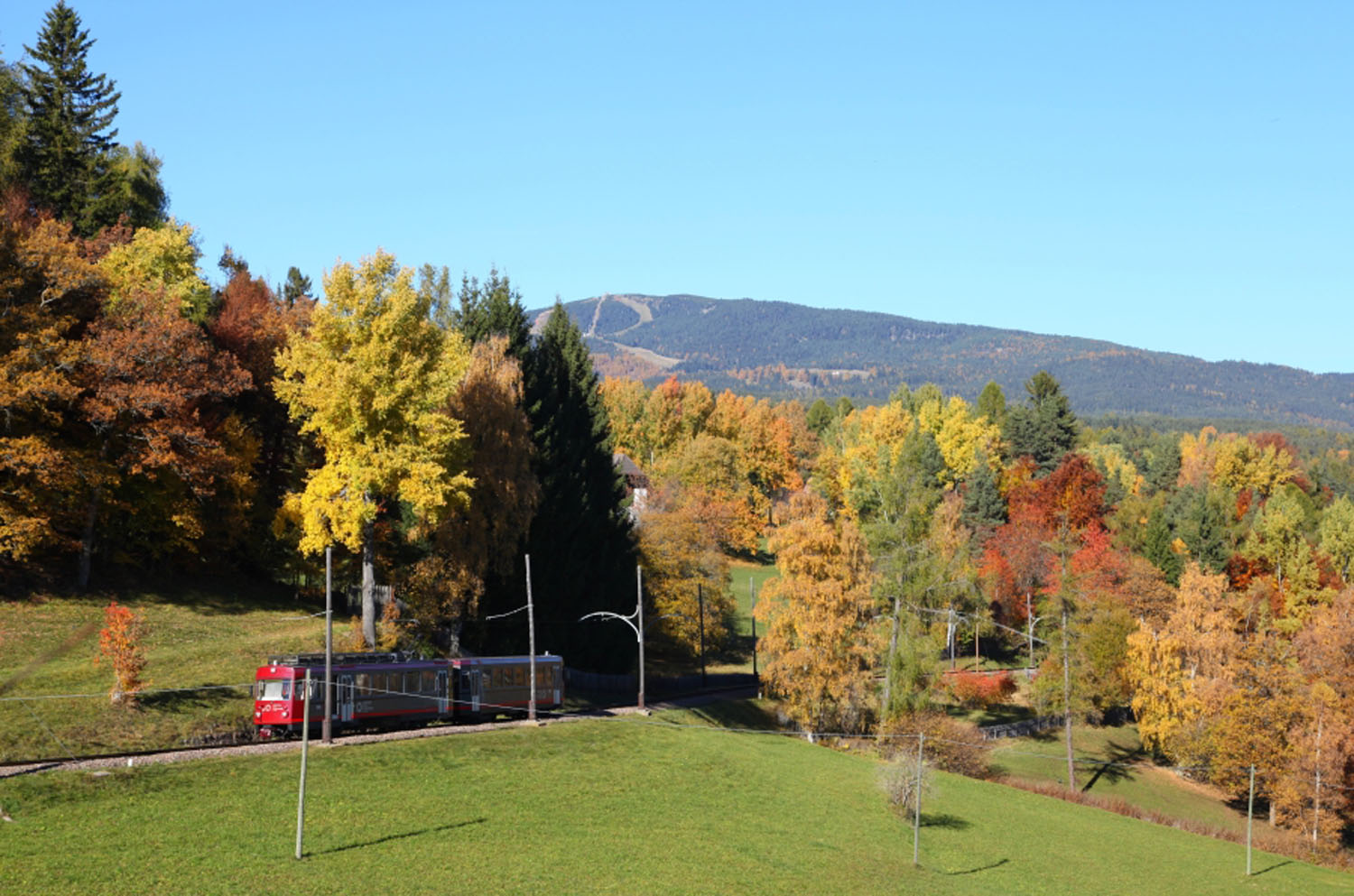 1. Färbung Bunt, bunter, Herbst am Ritten. Färbt sich das Laub gold, rot und braun, zeigt sich die Natur in ihrer schönsten Pracht. Hier eine Spiegelung der rot-gelben Bäume im Wasser eines Sees, dort bunte Blätter im Gras. Eine Wohltat für’s Auge. Besonders schön: Eine Fahrt mit der