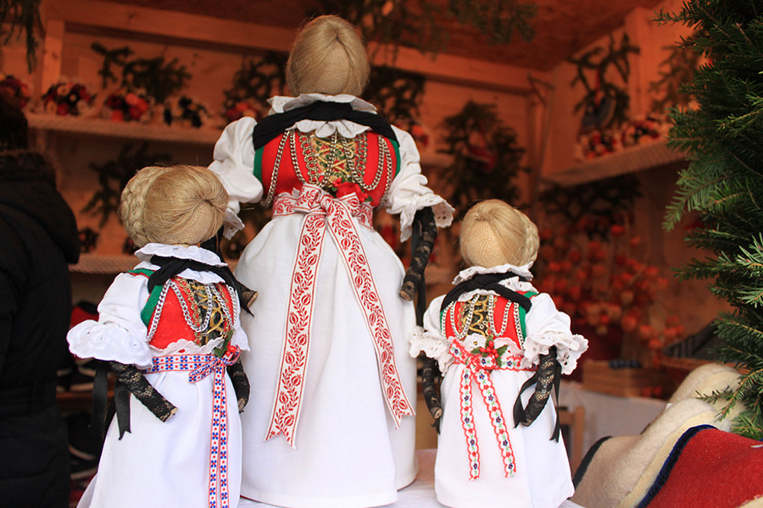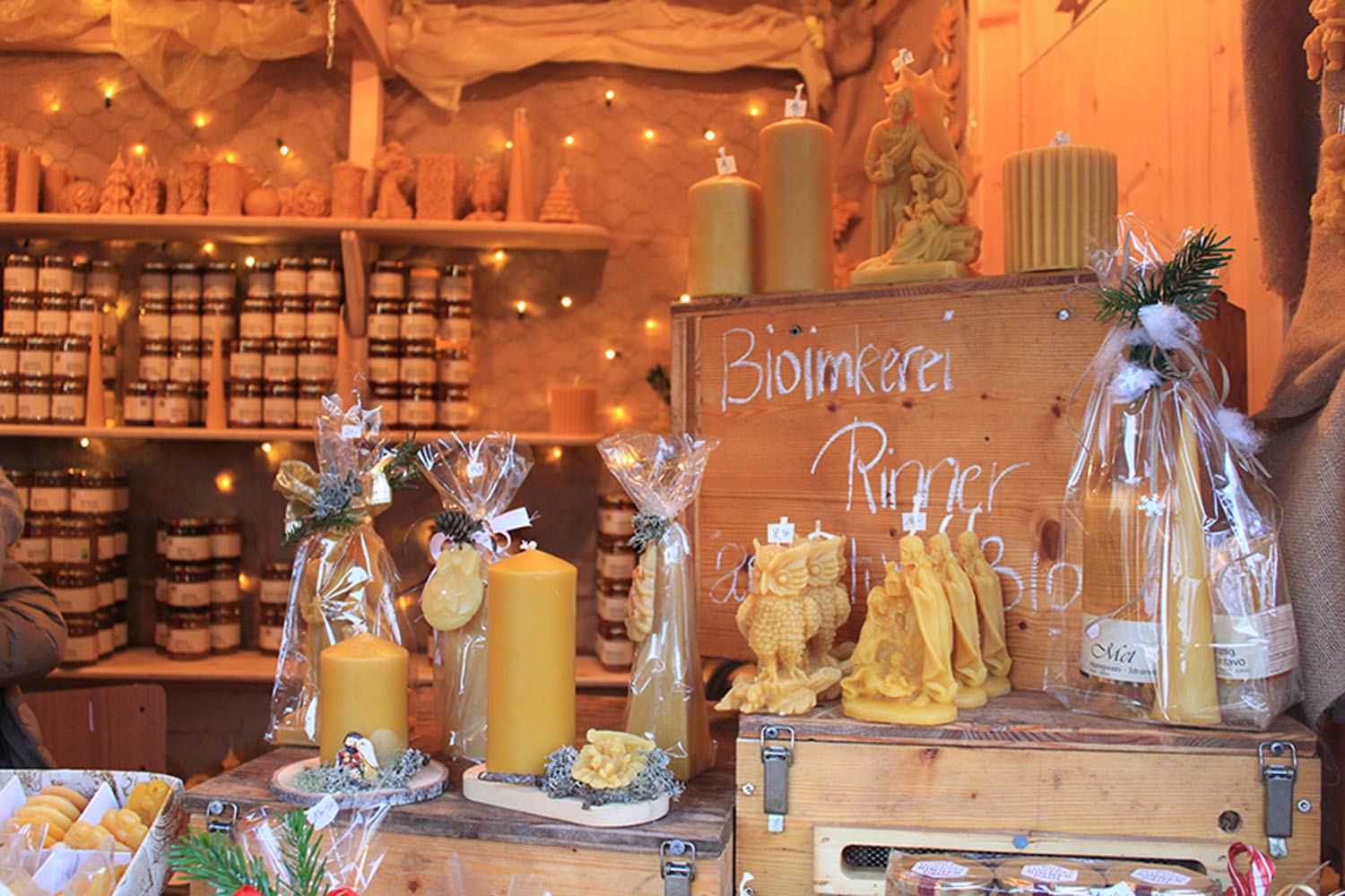 Ein paar Meter neben der Ausstiegsstelle sehen wir dann auch schon die ersten Weihnachtsmarktstände, aber man merkt gleich, dass wir den Trubel im Tal gelassen haben. Hier herrscht eine fast gelassene und beschauliche Stimmung. Es gibt kunsthandwerkliche Produkte, traditionelles Handwerk und typische Südtiroler Spezialitäten. Ein Feuer knistert und Überraschungen warten auf die Kinder...
