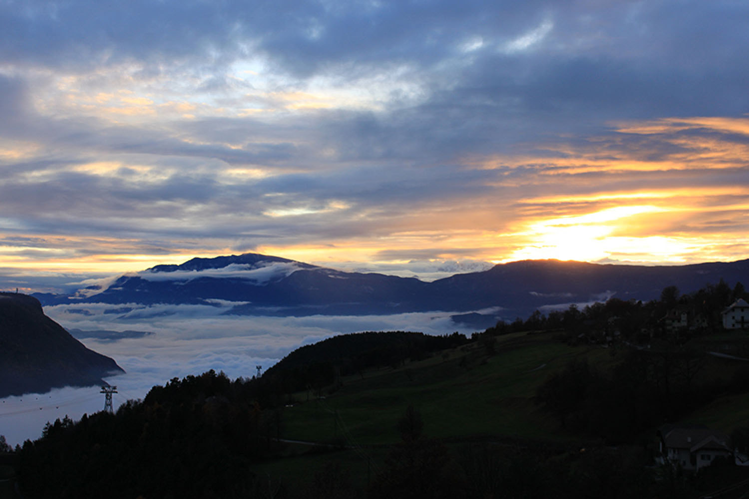 Am Ritten ist immer alles etwas anders. So auch die Advents- und Weihnachtszeit. Mit dem Rittner Bahnl, das die kleinen Weihnachtsmärkte verbindet, kann man der Hektik und dem Trubel der Adventszeit entfliehen und sich auf besinnliche und romantische Weise auf Weihnachten einstimmen. Nach 12 Minuten Fahrt sind wir schon da: Nach 12 Minuten Panoramafahrt mit der Seilbahn sind wir von Bozen startend am Ritten in Oberbozen angekommen. Schon die Fahrt war ein Spektakel für sich: Kurz vor Oberbozen lichtet sich erneut der Blick und gibt freie Sicht auf den Sonnenuntergang in den Dolomiten.