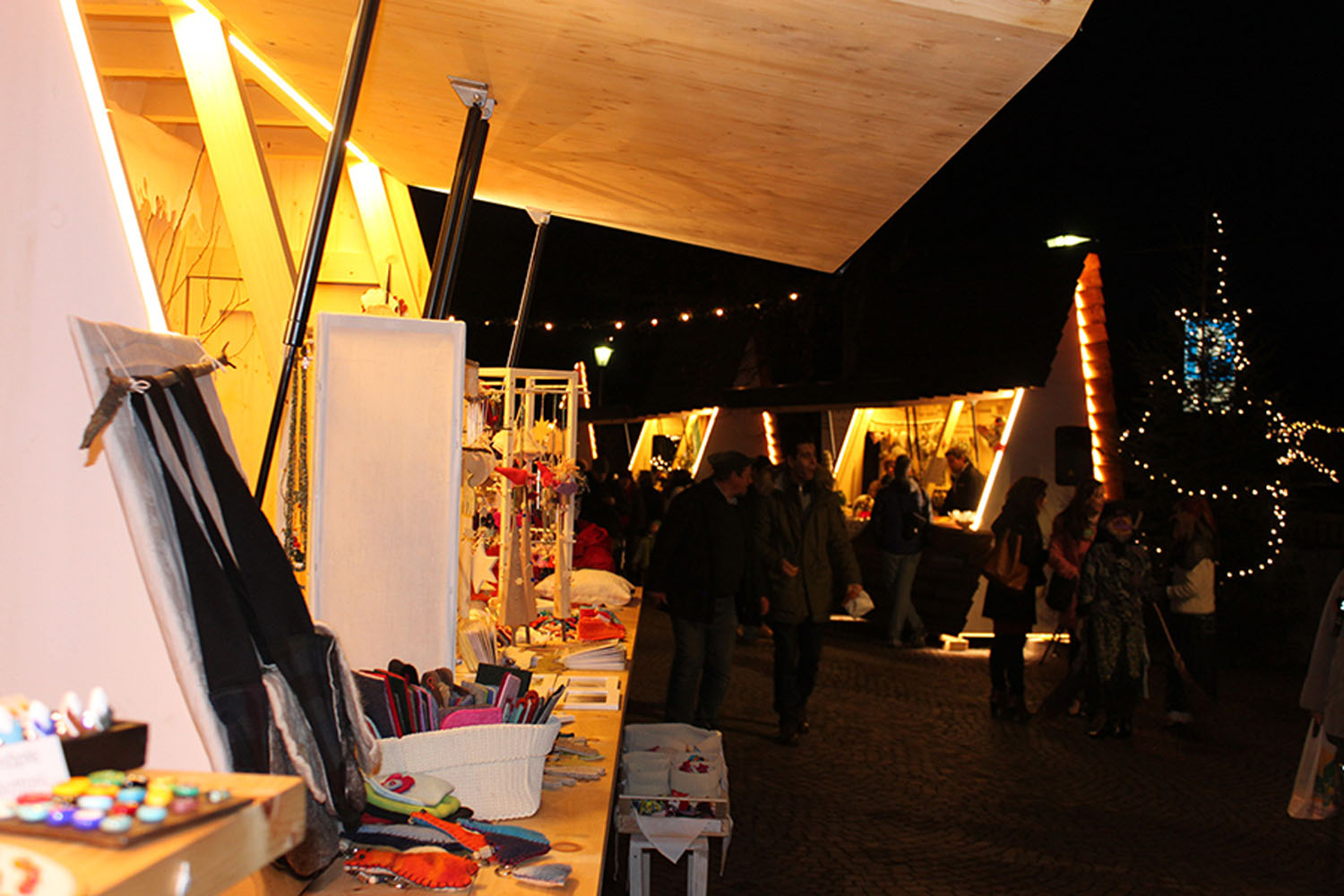 12 Minuten, um der Hektik zu entfliehen Im Dorfzentrum von Klobenstein haben wir dann wieder die Möglichkeit, kleine Geschenke zu kaufen an den liebevoll gestalteten Holzständen, die an Christbäume erinnern. Es gibt Badesalze, Honig, Flechtarbeiten, handbemalten Christbaumschmuck, viele verschiedene Produkte vom Schaf, Polster mit Zirbenspäne-Füllung, Kerzen, Laternen, Bilder, Gestricktes, Gehäkeltes und Genähtes – um nur einiges zu nennen. Die Kinder können mit der Pferdekutsche eine Runde drehen oder den Schafen einen Besuch abstatten. Immer wieder steigt uns der Duft von Lebkuchen, Keksen, heißem Apfelsaft und Glühwein in die Nase. Das ist es, was das Christbahnl so sympathisch macht: Man hat alles, was man sich von einem Christkindlmarkt erwartet, ohne den Lärm und die Hektik drum herum. Nur 12 Minuten von Bozen entfernt.