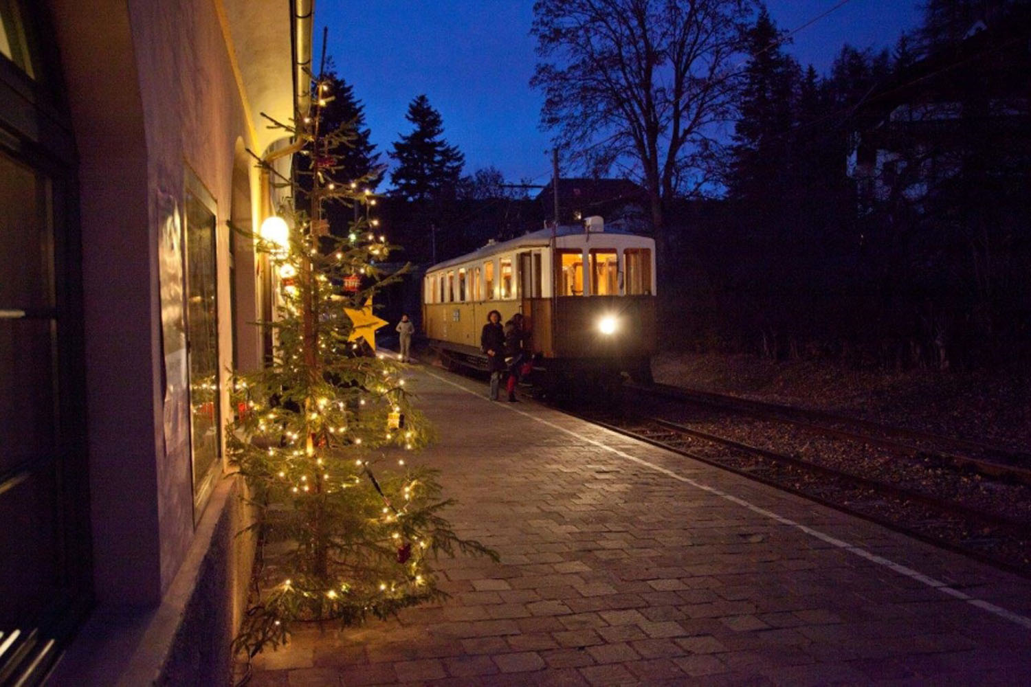 Christbahnl heißt das Konzept und bezieht sich auf den Zug, der Oberbozen mit Wolfsgruben und den Hauptort Klobenstein verbindet. Die Weihnachtsstände sind im Stil der 118 Jahre alten Triebwagen gebaut. Dann ist es soweit: In aller Gemütlichkeit fährt ein Zug in den Bahnhof ein. Auf dem Weg zwischen Klobenstein und Oberbozen steigen wir in Wolfsgruben aus wo im historischen Plattnerhof ein weiterer Stand von Handarbeiten auf uns wartet. Musikanten begleiten uns mit ihren Klängen und bringen uns in eine richtig schöne vorweihnachtliche Stimmung...