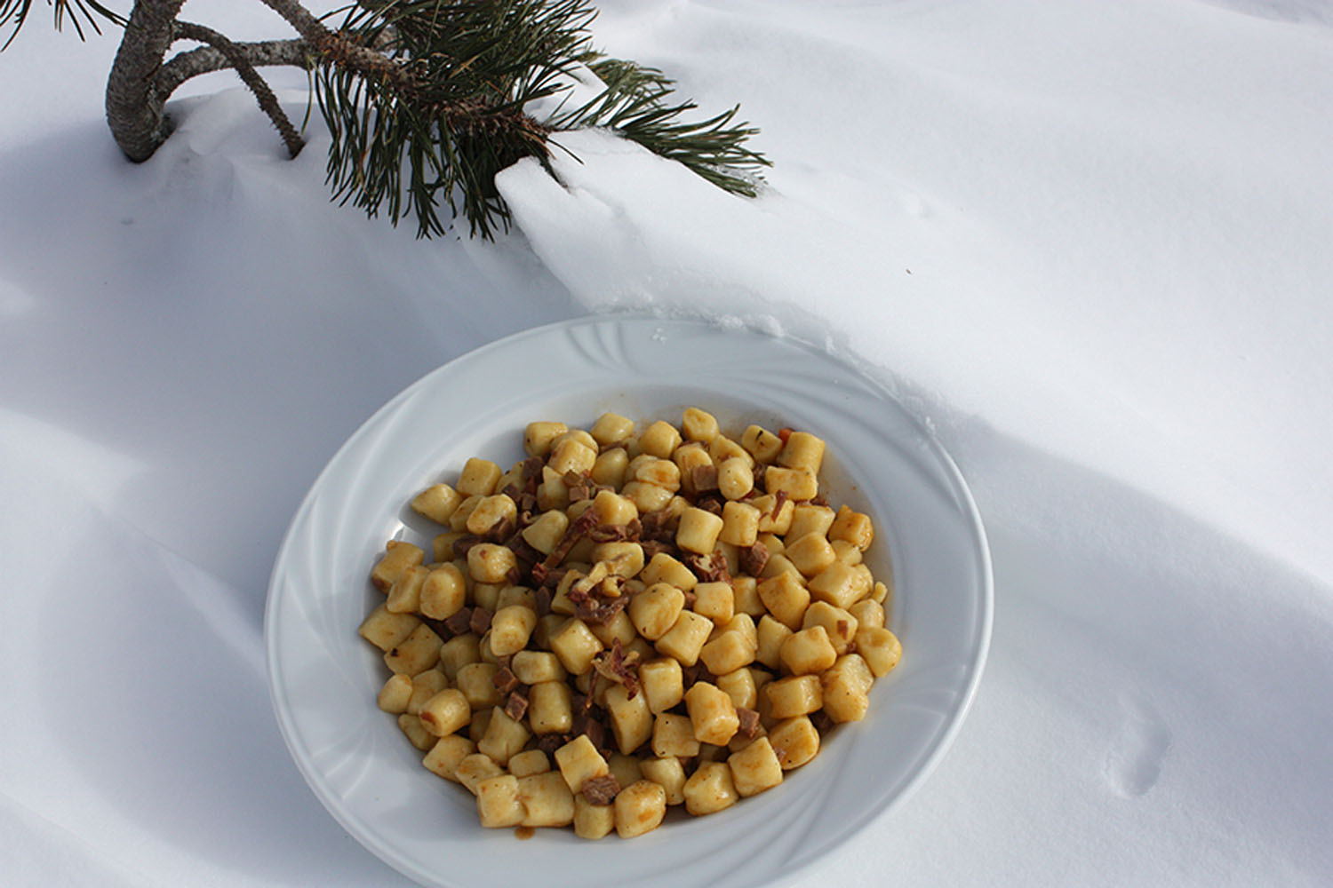 Bewegung am Berg und in der frischen Winterluft macht hungrig. Die nächste Hütte ruft zur Einkehr bei Schlutzkrapfen, Knödel, Speckteller & Co. Leckereien besonderer Art werden 2023 erstmals bei „Genuss im Schnee“ am Rittner Horn geboten. Die geladenen Gastköche sorgen für erlesene Geschmackserlebnisse. Dazu gibt es passende Wein- und Apfelsaft-Empfehlungen von lokalen Produkten. Nachhaltig. Gut. Lokal. So soll ein kulinarischer Spaziergang im Schnee sein!