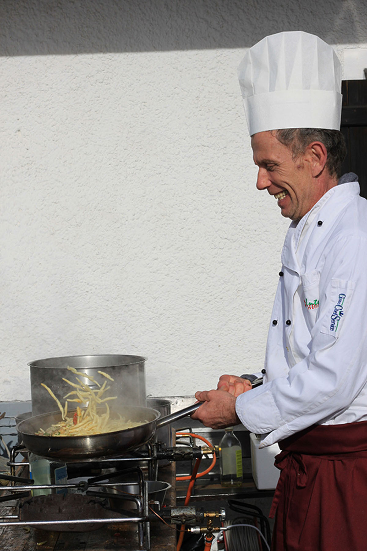 Schön pikant und mit einer tollen Aussicht gratis dazu. Die Hauptspeise wird vor der Feltuner Hütte gekocht und sie ist nicht nur optisch ein Gedicht: