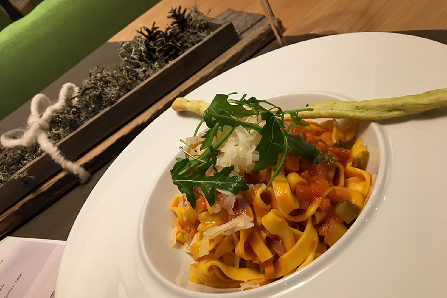 Berghotel Zum Zirm. Auf der Sonnenterrasse genieße ich ein wirklich geniales Antipasto: