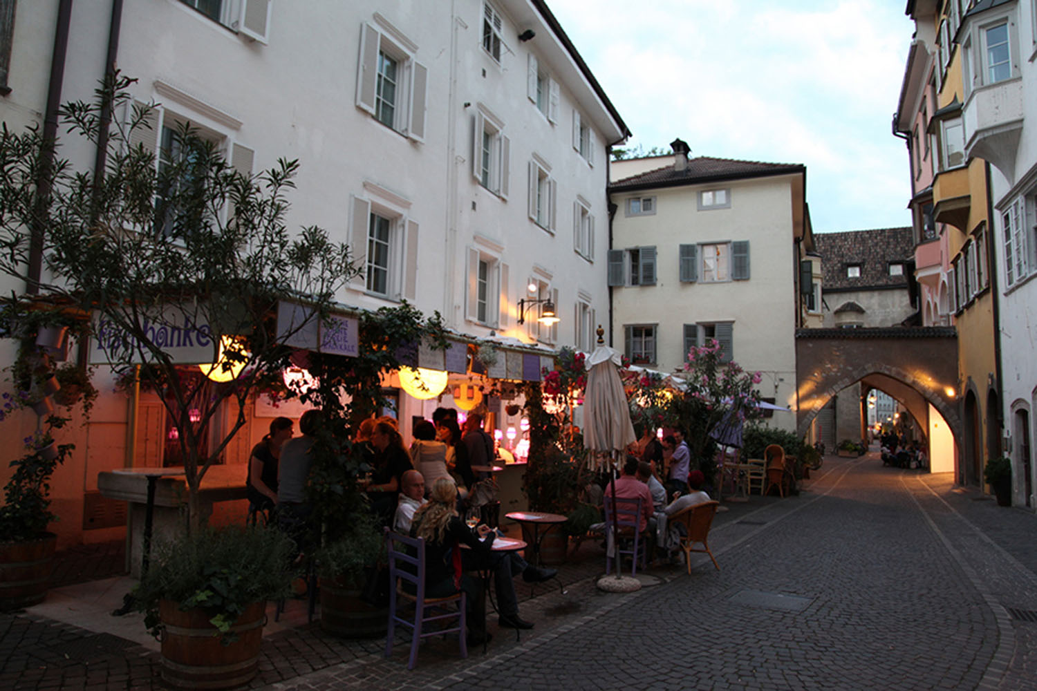 Kontraste machen das Leben spannend und darum geht es nun in die Hauptstadt Bozen. Dafür nehmen wir die Rittner Seilbahn, eine hochmoderne Umlaufbahn, die euch in 12 Minuten in den Talkessel bringt. Unterwegs gibt es wieder viel Futter für den Fotoapparat, bietet sich von manchen Stellen doch ein grandioser Blick über Bozens Dächer. Ein kleiner Bummel durch die Altstadt ist der perfekte Ausklang. Mit der Dämmerung füllen sich auch die Aperitivo-Bars, die Pubs, die Vinotheken. Wer jetzt noch keinen Veneziano oder Hugo probiert hat, ist selber schuld. Also: Prost!