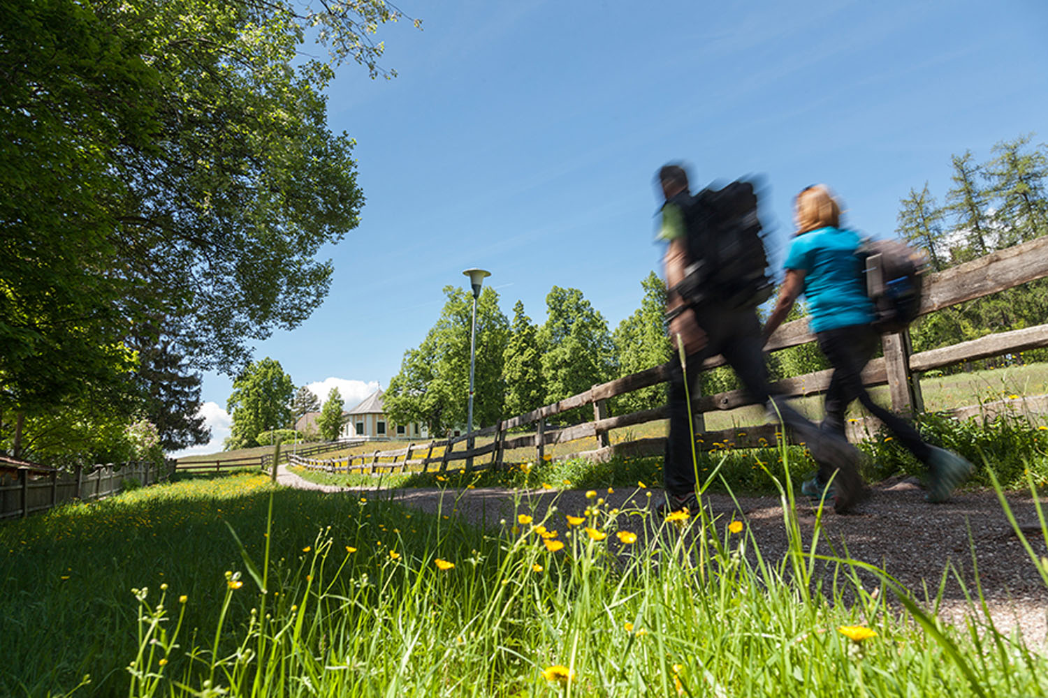 Von wunderbaren Ersteindrücken und exquisitem Mittagsschmaus gleichermaßen gesättigt, startet ihr am besten mit einem Verdauungsspaziergang in den Nachmittag. Dazu nehmt ihr die Rittner Horn Bergbahn (Bus 166 nach Pemmern: ab Klobenstein/Bahnhof um 14:03 Uhr). Oben angekommen, hat man zu Recht die schönste Rundum-Aussicht in Südtirol. Nun könnt ihr euch für den gemütlichen Panorama-Rundweg oder den Aufstieg auf den Gipfel auf 2.260 m entscheiden. Eins ist sicher: Euer Fotoapparat kommt wohl kaum zur Ruhe!