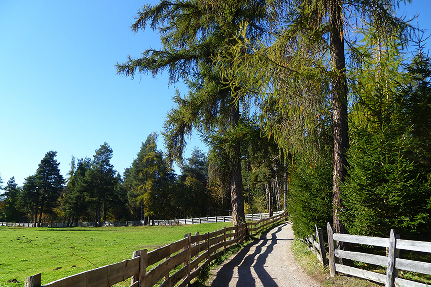 Zeit für’s Mittagessen. Aus den zahlreichen Gastbetrieben fällt es schwer, einen auszuwählen. Von der Stube oder Sonnenterrasse aus schweift der Blick auf die Bergwelt der Dolomiten, während typische Südtiroler Hausmannskost mit italienischem Einschlag vom Teller in den Magen wandert.