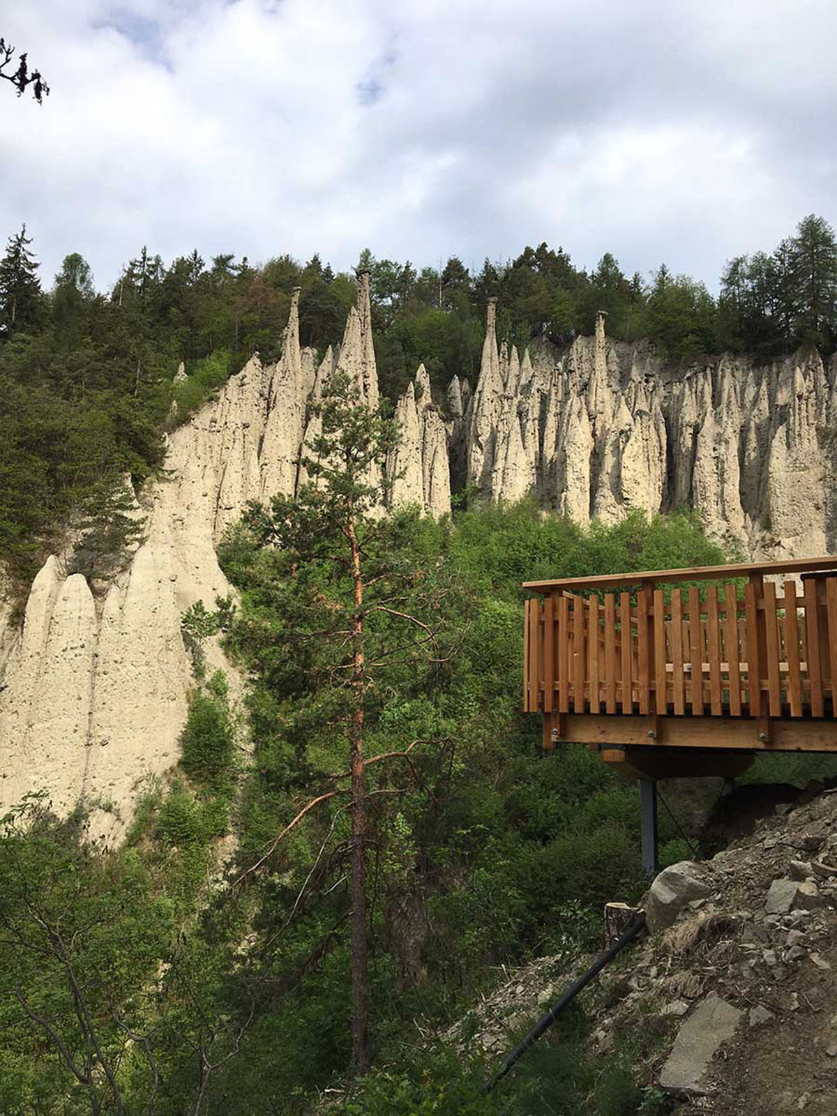 Am Ritten gibt es an drei Orten Erdpyramiden zu bestaunen. Nach Unterinn am Keschtnweg gibt es eine Aussichtsplattform, von der aus man das Naturspektakel in seiner ganzen Pracht bestaunen kann.
