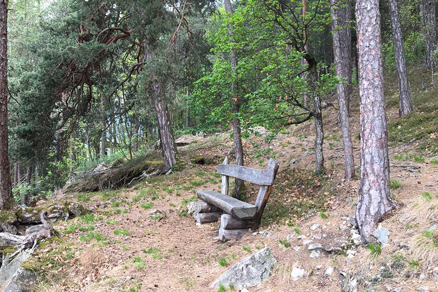 Vom Dorfzentrum in Unterinn (Parkmöglichkeit für Ihr Auto) gehen wir immer dem Wegweiser mit dem Symbol der Kastanie nach und kommen über den Huberweg zu einer Apfelanlage. Danach beginnt der eigentliche Steig durch den Wald. Sattes Grün, frische Luft, Ruhe: Kaum etwas eignet sich so gut zum Abschalten und Auftanken wie ein Spaziergang im Wald. Er schluckt die Geräusche der Umgebung und nach einer Weile öffnen sich unsere Ohren wieder, um die Geräusche des Waldes aufzunehmen: das "Tock-tock-tock..." eines Spechtes in der Ferne oder das „Kuckuck-Kuckuck“, ein Rascheln da und dort.