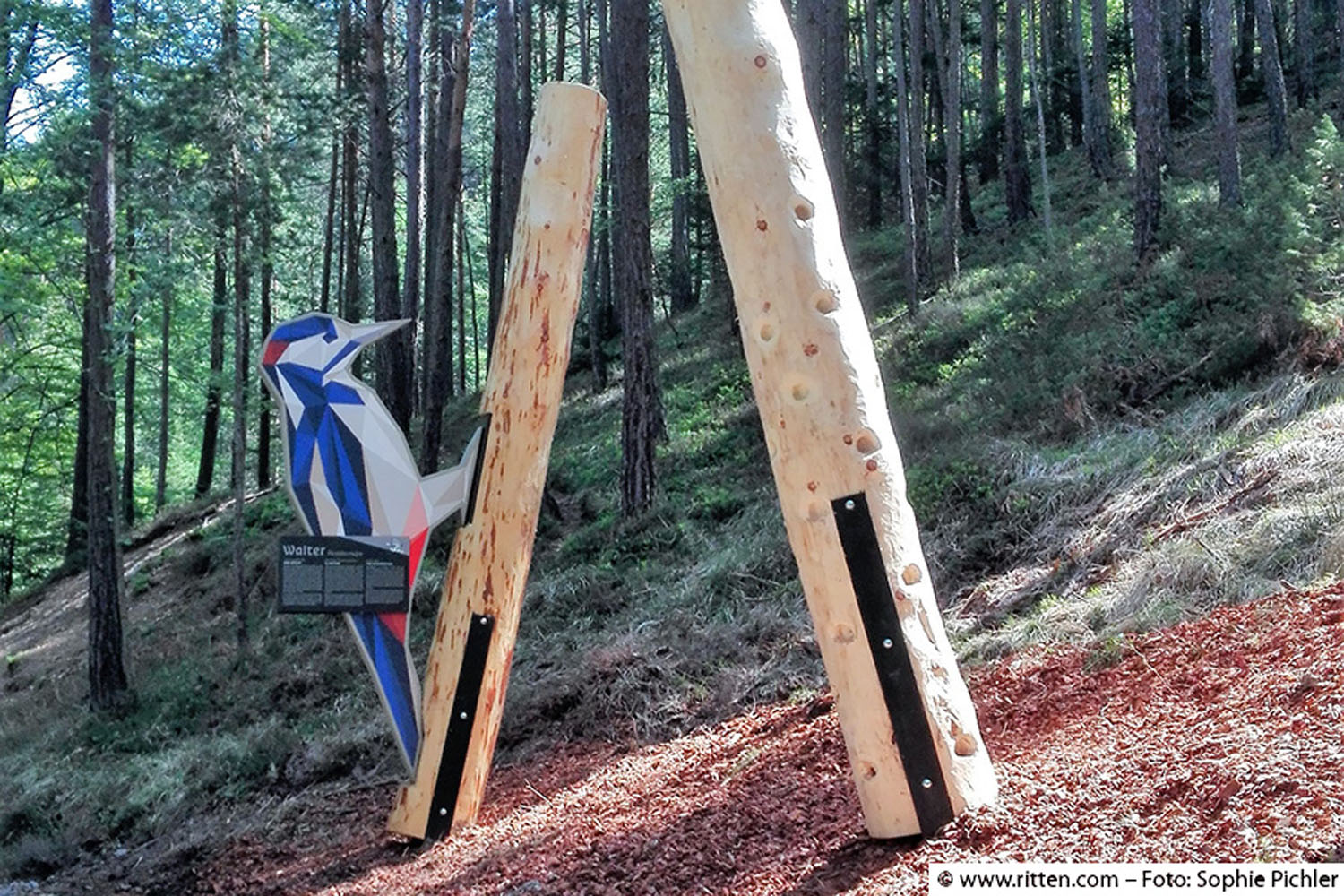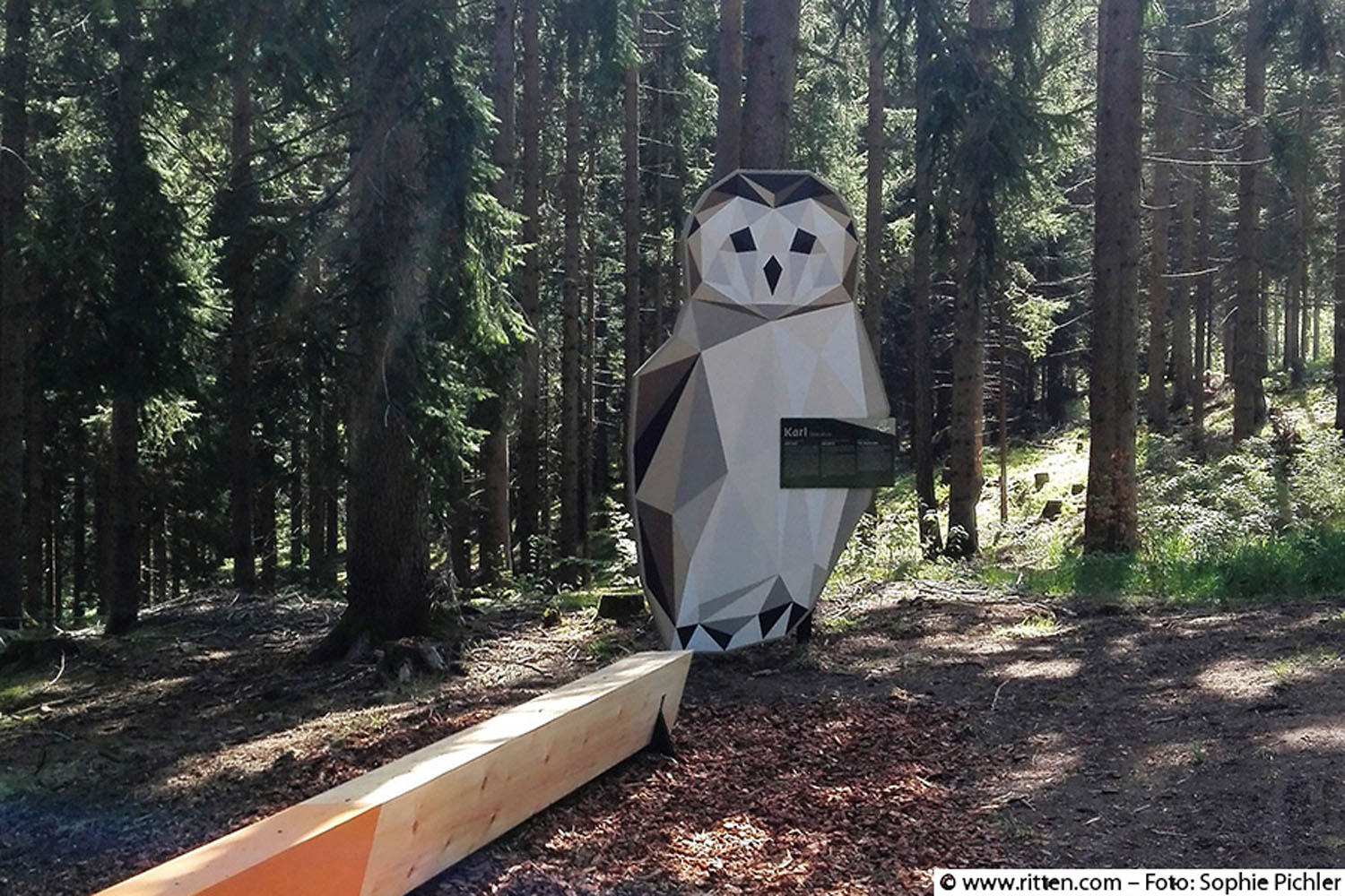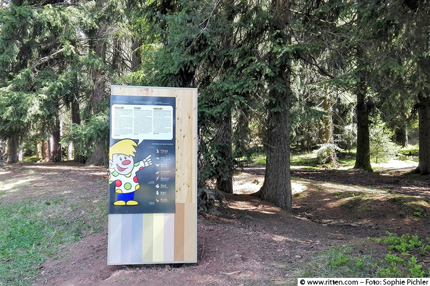 Zu Beginn des Weges begrüßt uns Pyramix, der uns so einiges über die Wildtiere am Ritten erzählt. Schon ist die Neugier geweckt und los geht’s!