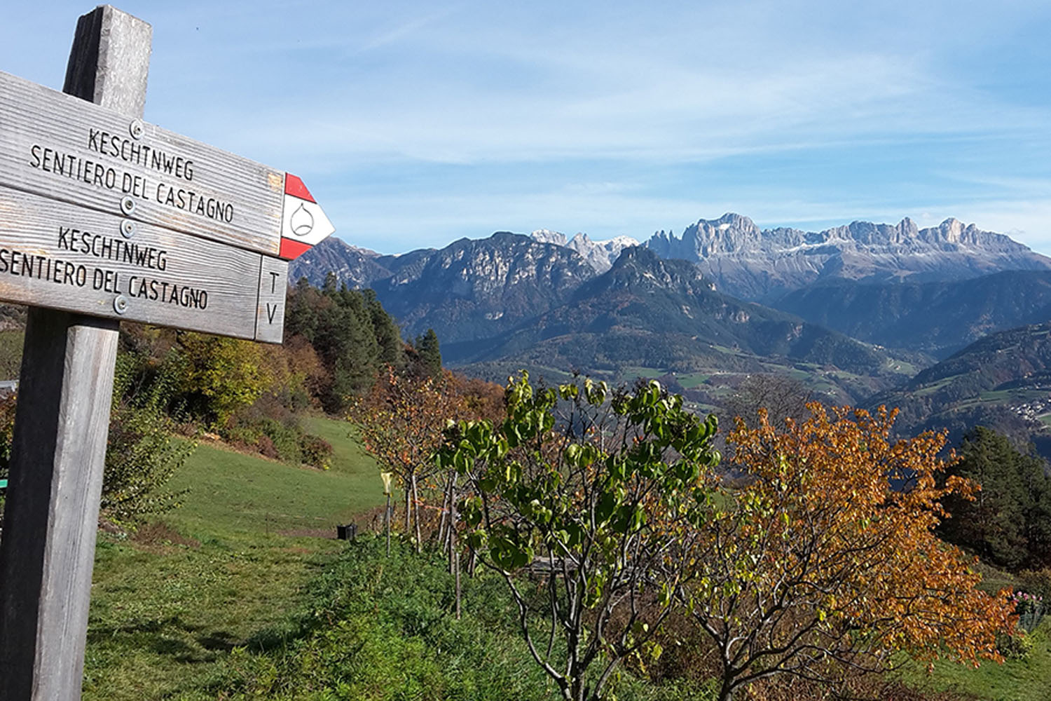 - Sehr wichtig ist auch die vorhergehende Wanderung beim Törggelen. Denn man „geat“ (Dialekt für gehen) Törggelen und fährt nicht direkt zur Stube. Nach einer schönen Herbstwanderung gibt’s dann die köstliche Belohnung. Während der Wanderung gilt das Motto: „Dem Wanderer die Landschaft, dem Bauer die Ernte“