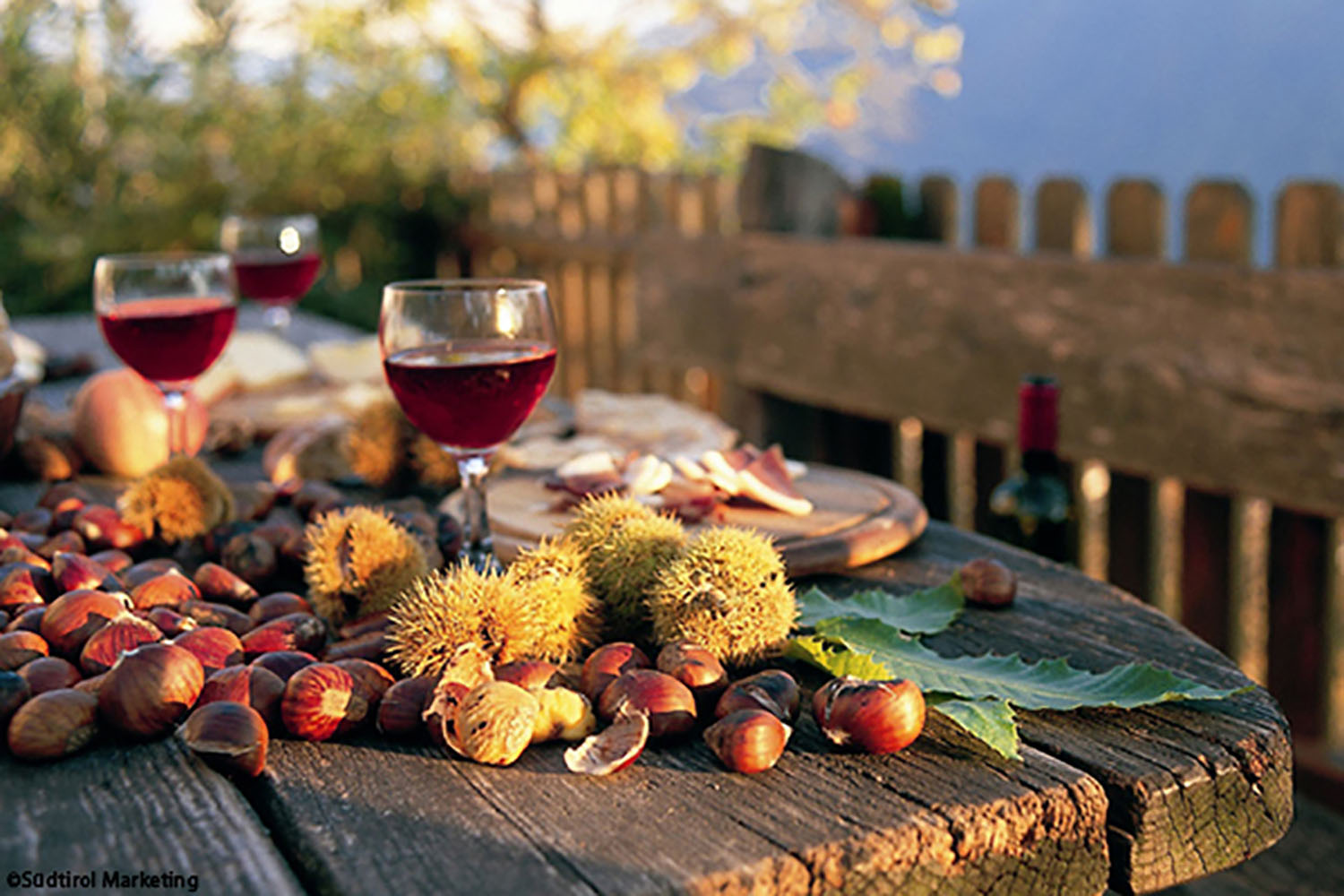 Herbstzeit ist Törggelezeit in Südtirol. Die sogenannte fünfte Jahreszeit ist seit jeher Brauch und ist ein Muss für jeden, der seinen Herbsturlaub im Südtiroler Landl verbringt. Das Törggelen ist heute längst ein weit über die Landesgrenzen Südtirols hinaus bekannter Brauch, bei dem der herbstliche Überschwang der Natur gefeiert wird: Die goldenen Wälder vor blauem Himmel und der Duft der reifen Trauben an sonnengeküssten Hängen versetzen jeden in Hochstimmung!