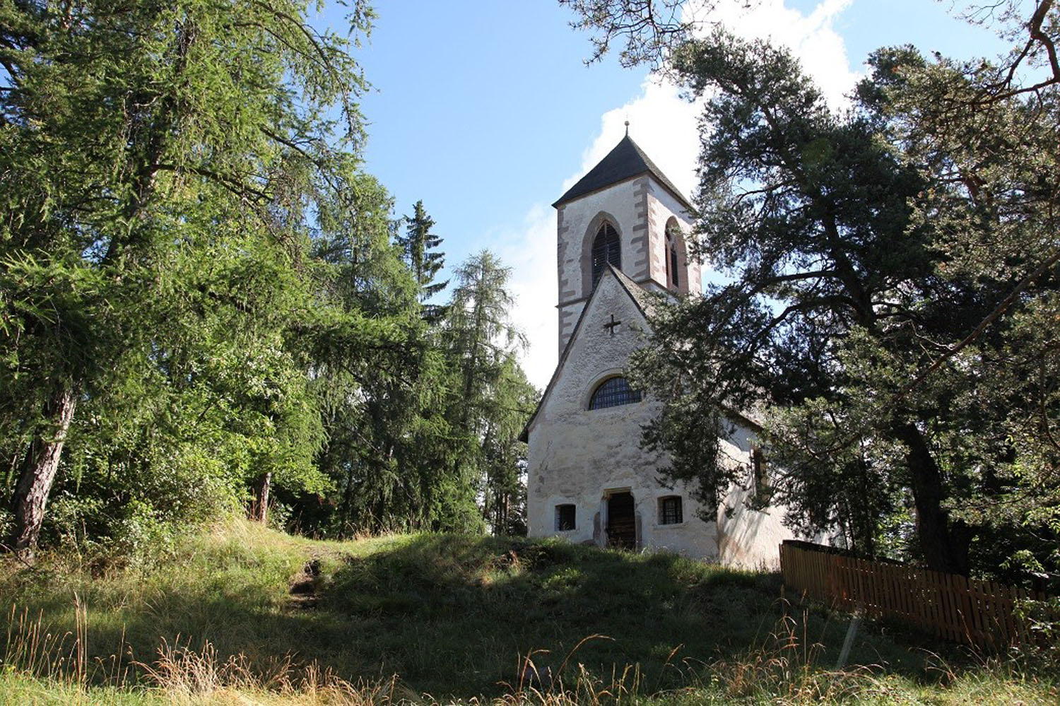 Die freie Lage des Gotteshauses auf einem bewaldeten Hügel, die Kirchenpatrone, die einzelnen Bauformen und nicht zuletzt die Freskenausstattung sprechen für ein hohes Alter. Zwar liegt ein Großteil der Wandbemalung noch unter der Tünche verborgen, doch kann man auf Grund der freigelegten Wandbilder schließen, dass es sich hierbei nicht nur um den ältesten Freskenzyklus auf dem Ritten, sondern um ein Kunstwerk handelt, das in seiner Eigenheit von überregionaler Bedeutung ist. Aber, wie angedeutet, vieles liegt noch unter der Oberfläche verborgen, und auf den da und dort verstreuten schriftlichen Dokumenten, die Aufschluss geben könnten, liegt noch viel Staub.
