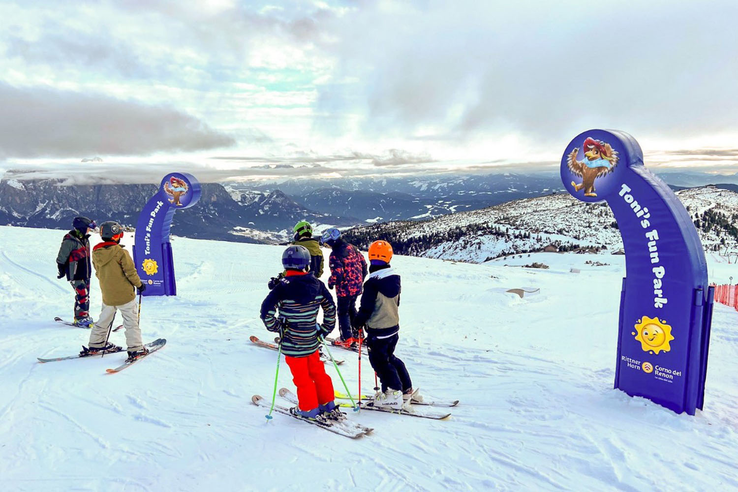 „Toni’s Fun Park“ zu sehen, ein Easy Snow Park für die kleinen Wintersportler. Kurz bevor wir die Bergstation der Gondelbahn erreichen machen wir noch einen Abstecher zum