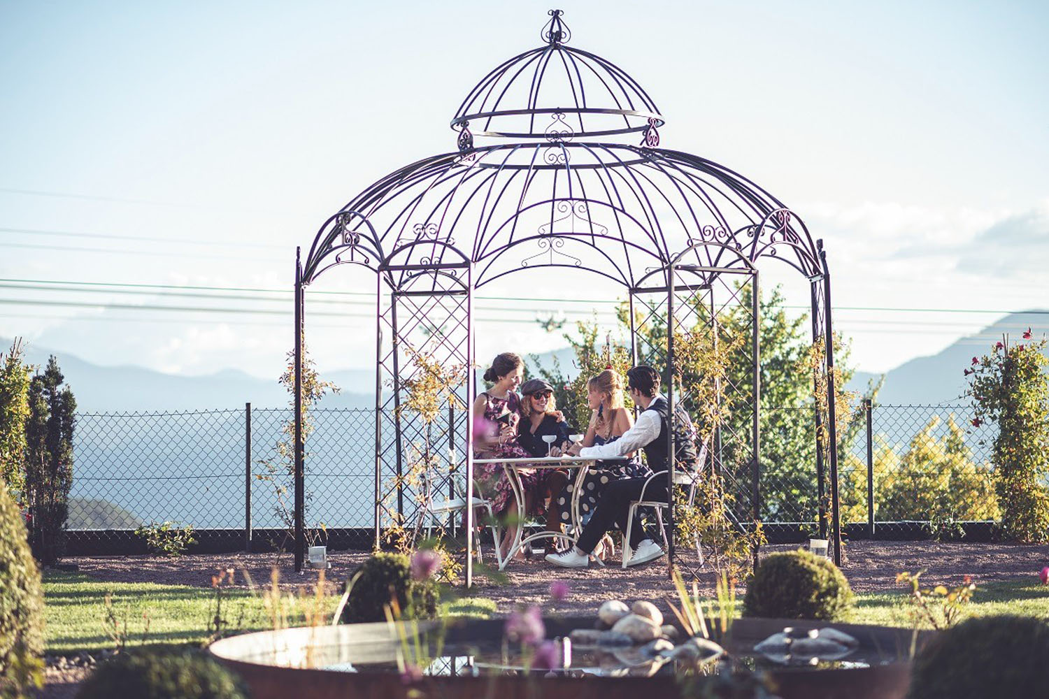 „Eine Gloriette ist ein Gebäude in einer Gartenanlage, das sich auf einem gegenüber der Umgebung erhöhten Standort befindet. Glorietten dienen meist nur als Blickfang (Point de vue) und zählen zu den vor allem vom 17. bis 19. Jahrhundert beliebten Staffagebauten oder Follies.“ lesen wir im Wikipedia-Eintrag. Weit mehr als ein Blickfang ist die Gloriette der Familie Alber in Oberbozen. Es ist ein Gästehaus zum Wohlfühlen, Genießen und viel Liebe zum Detail, das spürt man in der Rezeption, in der Bar, im Speisesaal, auf der Terrasse, im Stiegenhaus, im Garten, einfach überall.